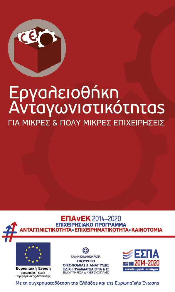 Στα πλαίσια του Ε.Π. "Ανταγωνιστικότητα, Επιχειρηματικότητα και Καινοτομία", το Υπουργείο Οικονομίας και Ανάπτυξης προκηρύσσει τη Δράση "Εργαλειοθήκη Ανταγωνιστικότητας για μικρές και πολύ μικρές επιχειρήσεις", με στόχο να αναβαθμίσουν και να βελτιώσουν την ανταγωνιστική τους θέση στην εσωτερική και εξωτερική αγορά, επενδύοντας στον εκσυγχρονισμό του παραγωγικού εξοπλισμού τους και στην πιστοποίηση των προϊόντων τους